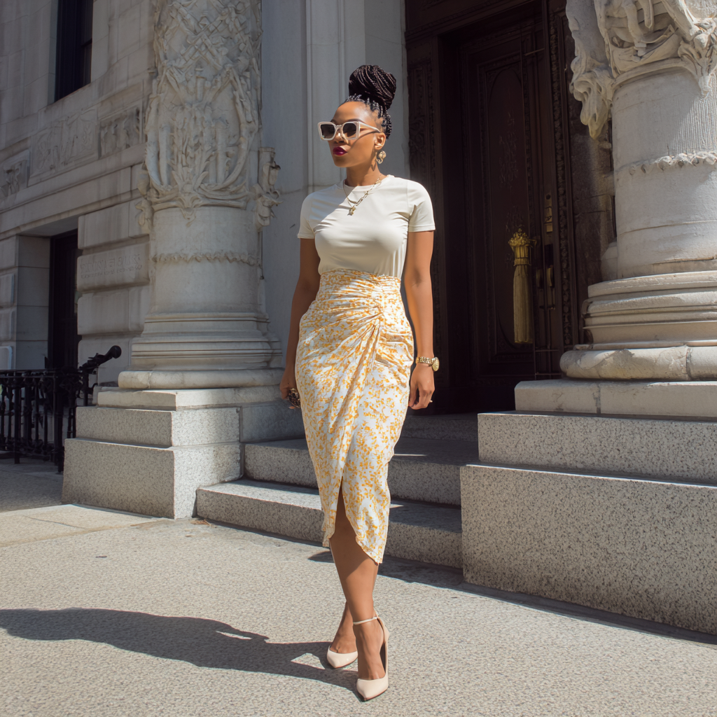 Styling tip: Add layered necklaces for instant polish. Why it stands out: Feminine, chic, and perfect for city strolls.