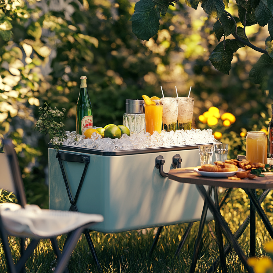 Another idea worth considering is the Cooler Station Bar. With this, you don’t have to set up hefty kinds of stuff just to have a decent bar. You just need a cooler and you are a few steps in enjoying a bar feels night. Open a cooler, put lots of ice on it, and add your favorite drinks. It is perfect for spontaneous gatherings like pop-up party or quick chill.