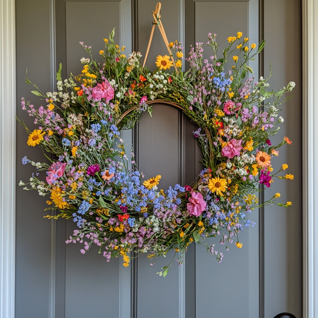 - Use floral wire or hot glue to attach your wildflowers—keep it asymmetrical for that effortless vibe.