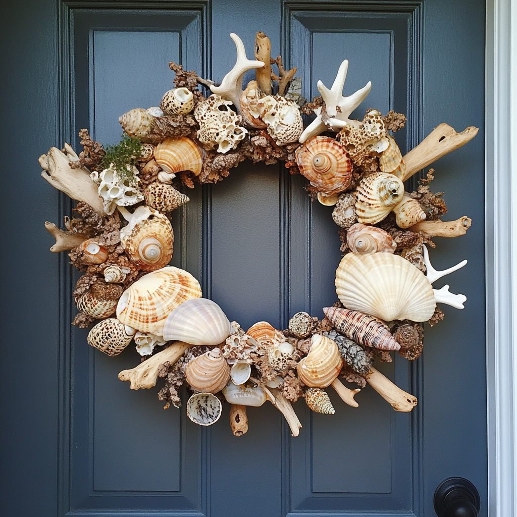 Okay, beach lovers—this one’s for you. Whether you live by the water or just wish you did, this wreath brings coastal calm to your doorstep.