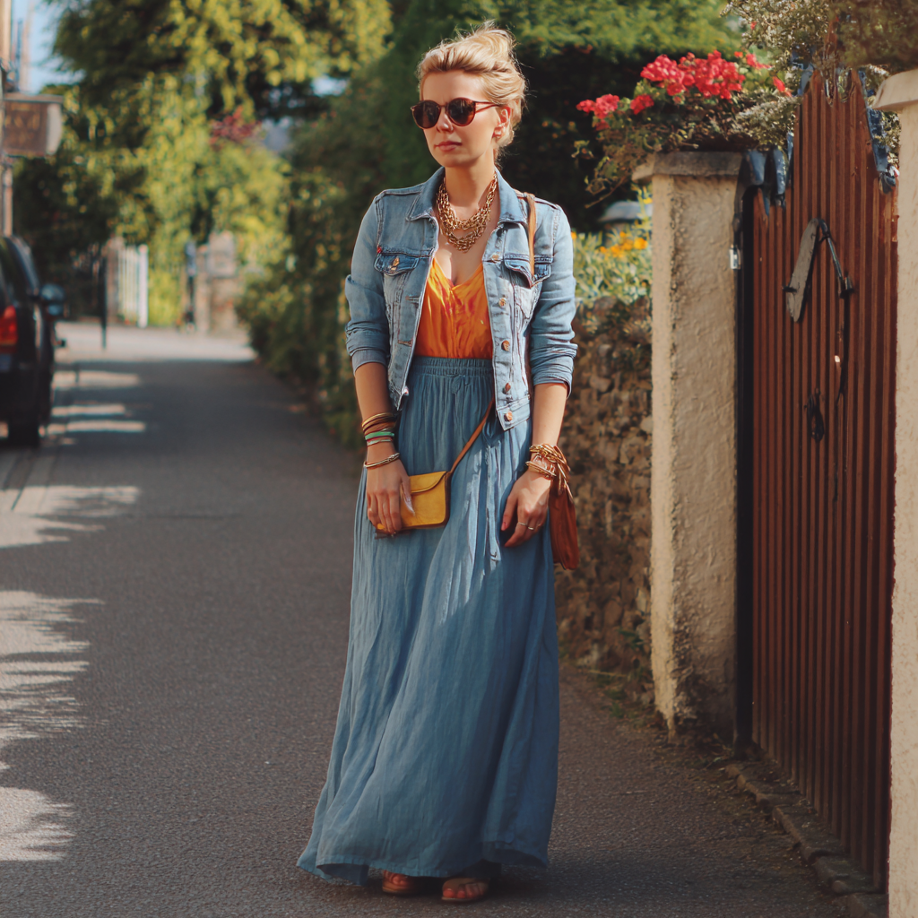 4. Maxi Dress + Denim Jacket