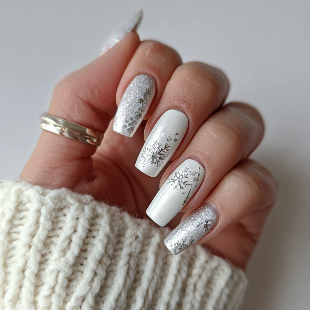 A tiny white snowflake on one accent nail is all you need to say, “Yes, I’m festive—but also chic.”