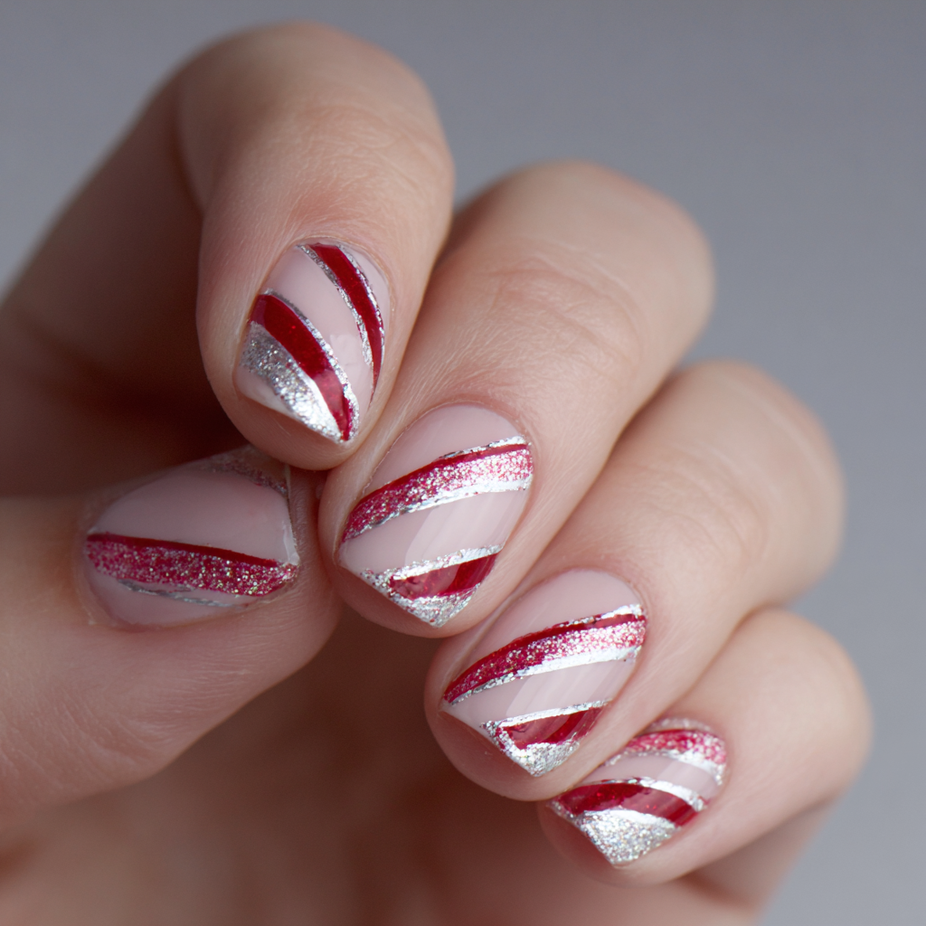 I know, I said no over-the-top candy canes—but one thin red stripe diagonally across a nude or white nail? That’s classy.