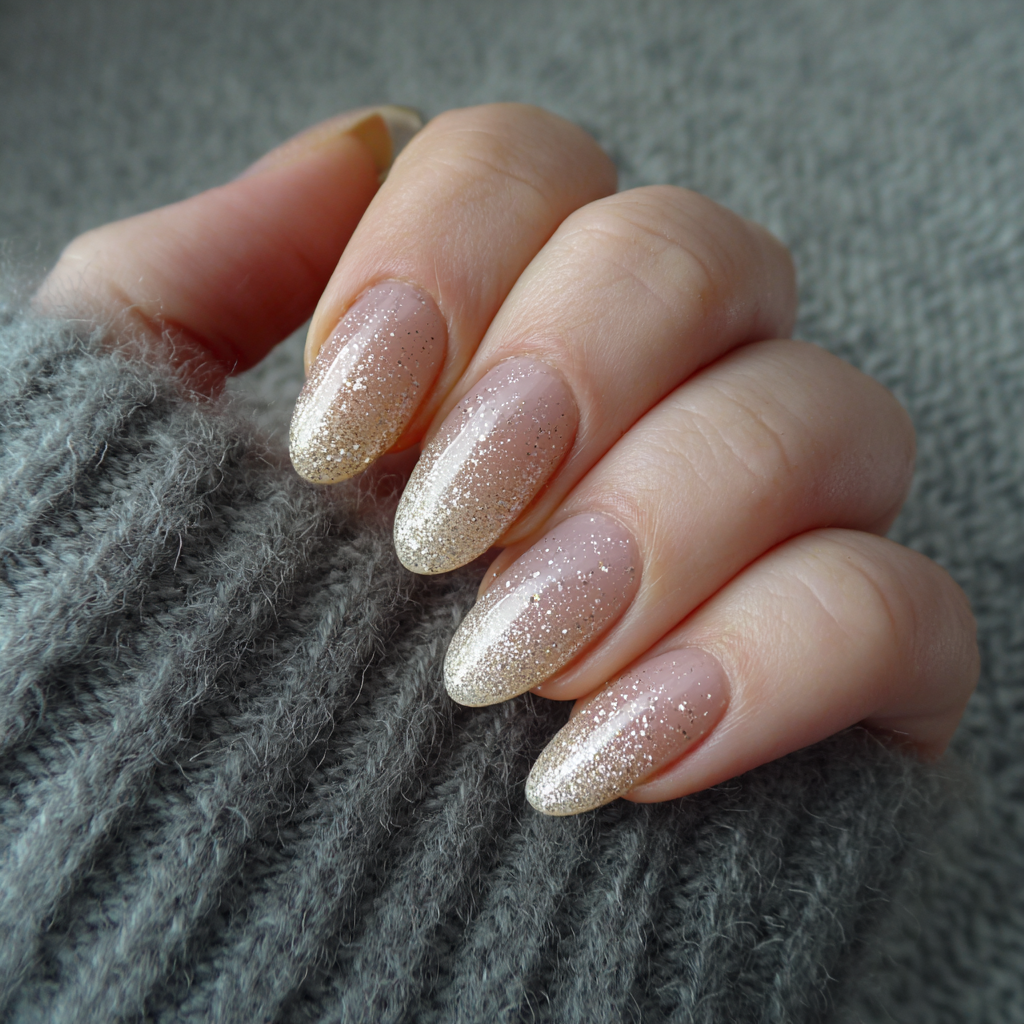 Glitter can totally work in minimalism if you use it sparingly. Try a gradient effect, starting at the base of your nail and fading upward.