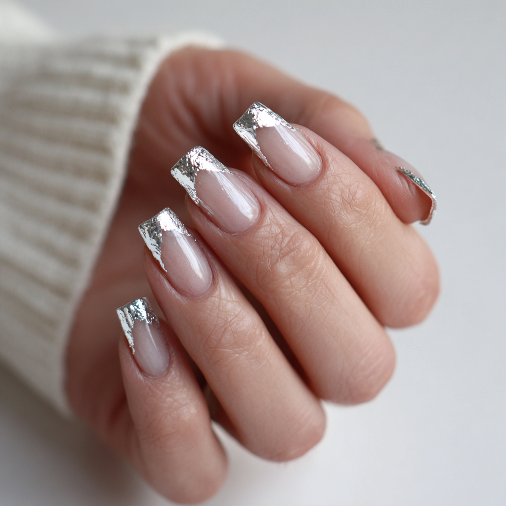 This design looks like your nails dipped their tips into liquid silver—minimal effort, maximum glam.