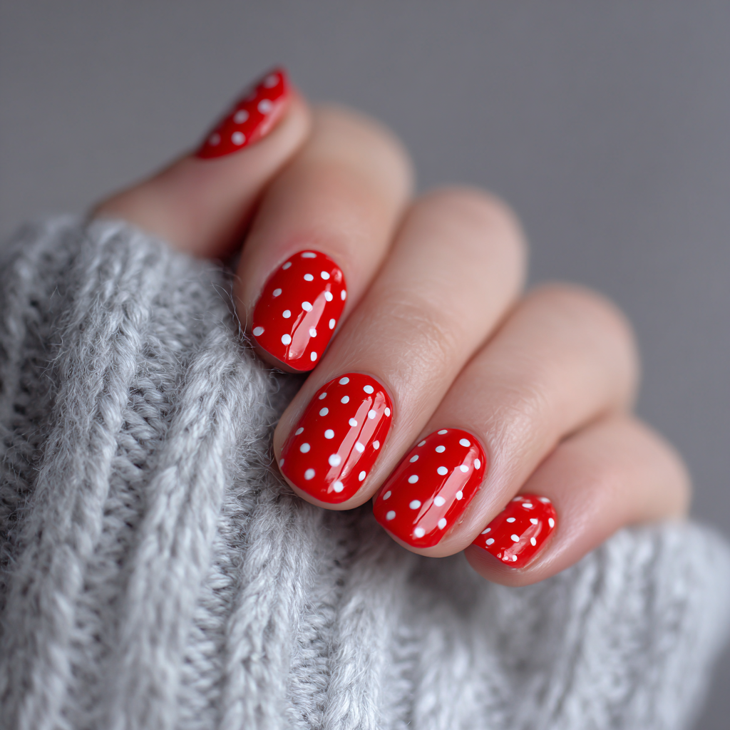 Who needs full-on nail art when you can do one tiny red dot per nail? It’s playful, graphic, and totally minimalist.