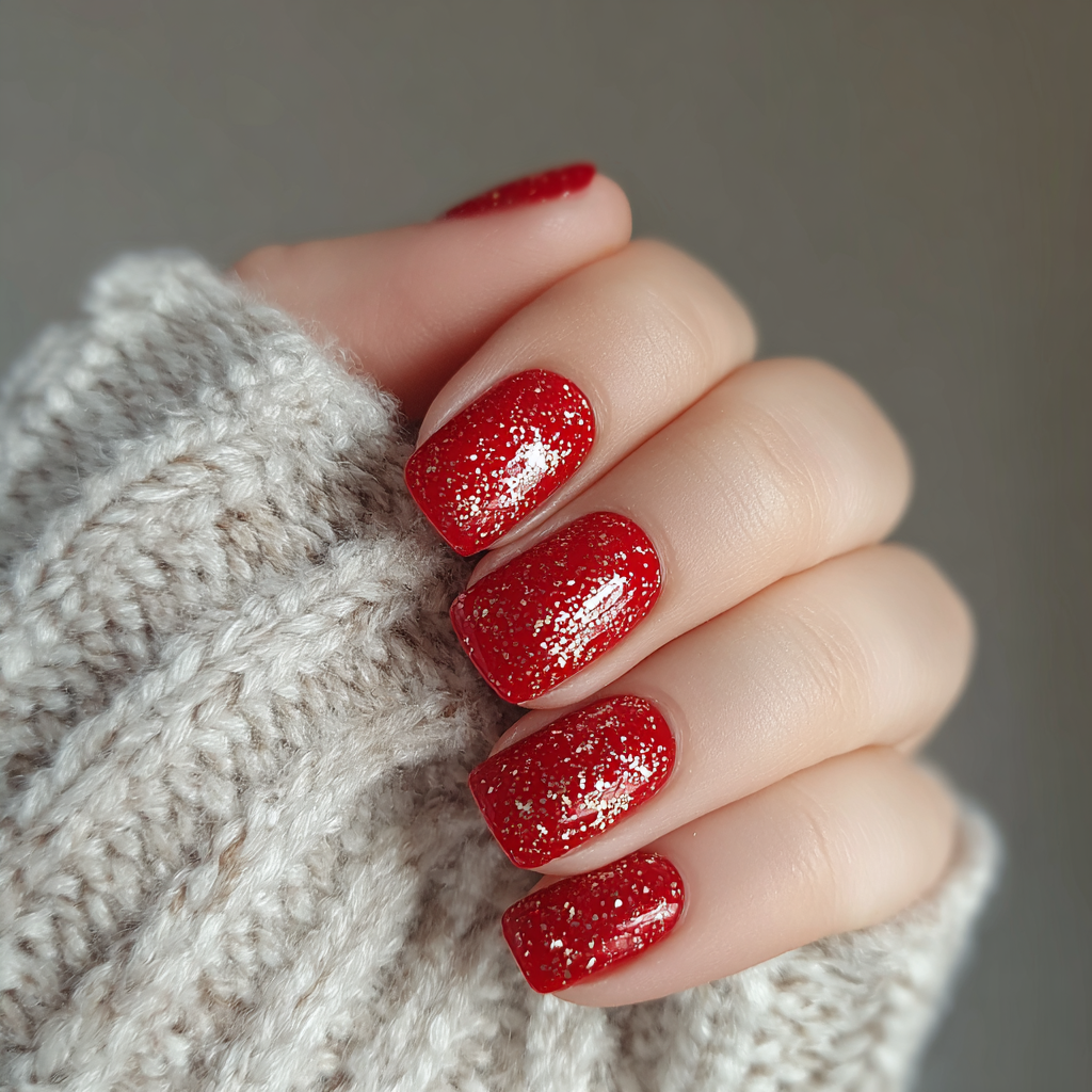 Yes, red is classic, but you don’t have to go full Rudolph. Instead, go for short nails painted in deep burgundy or brick red—super sleek and timeless.