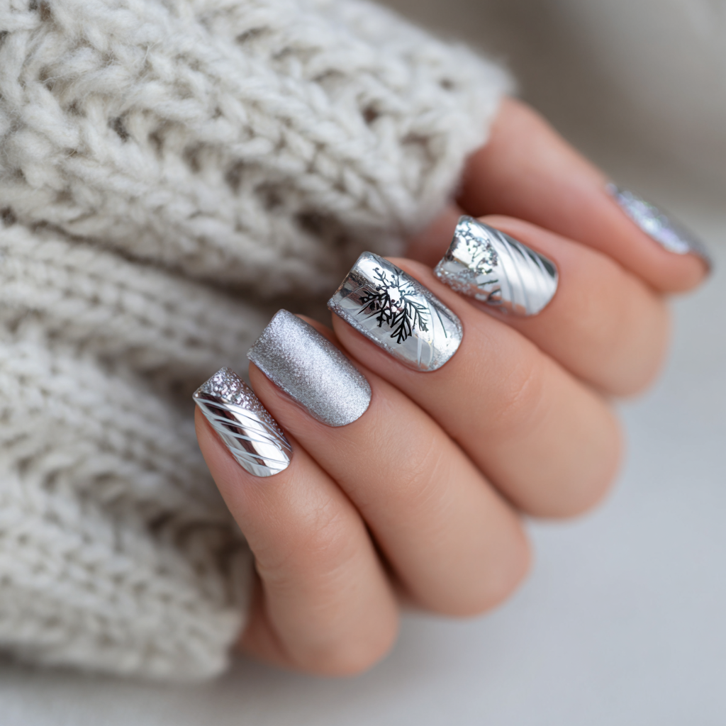 Take your go-to French manicure and swap the white tip for metallic silver, rose gold, or even emerald green. It’s festive without being flashy—like the nail version of a cashmere sweater.
