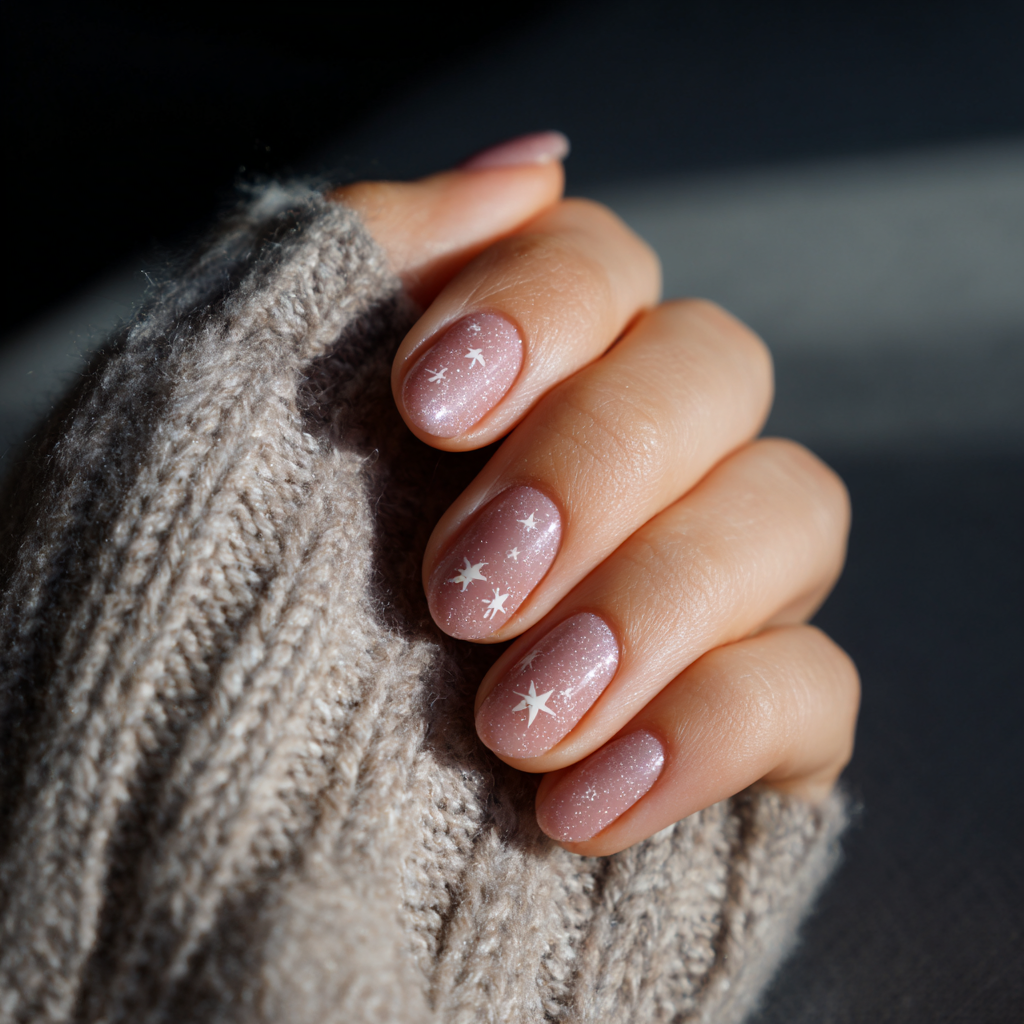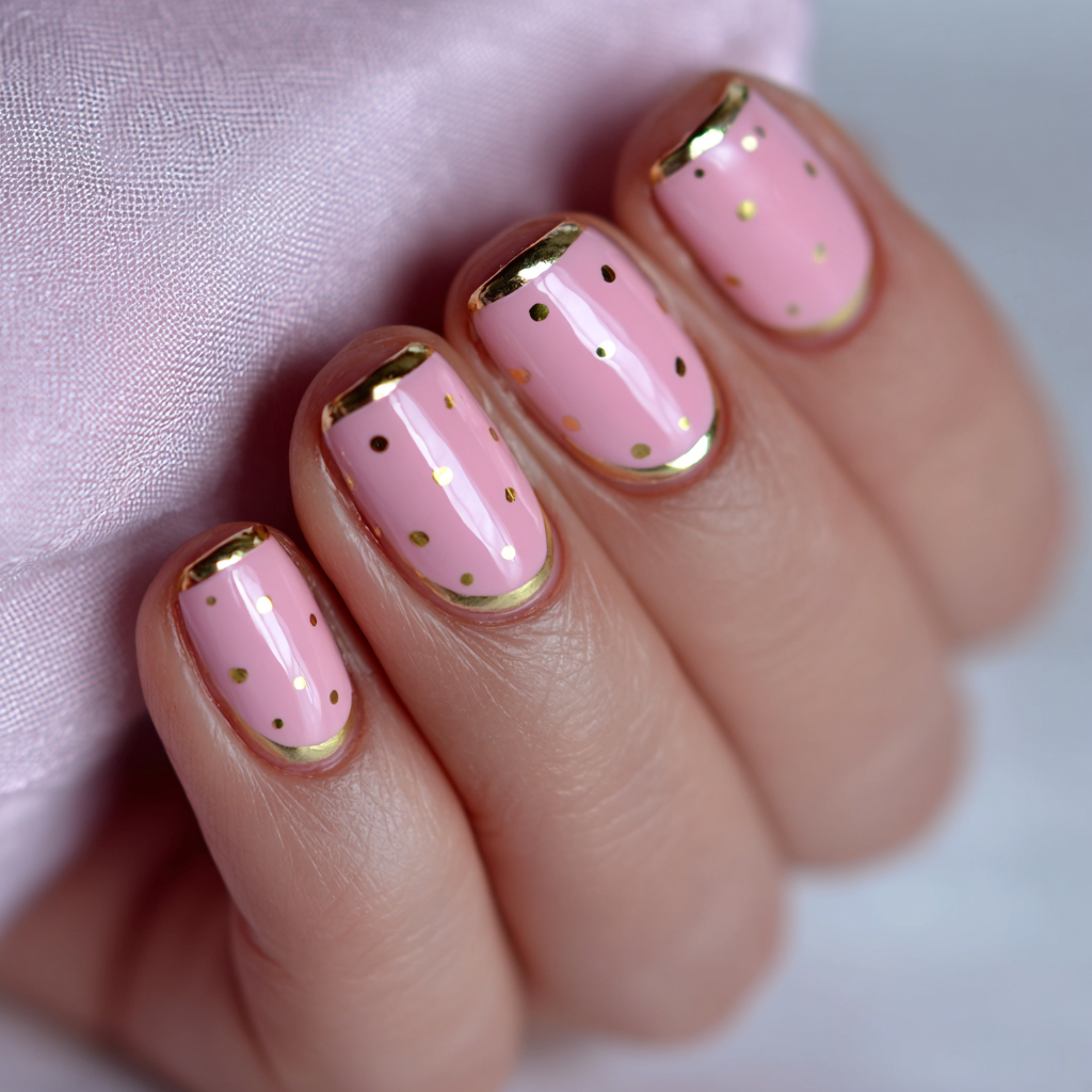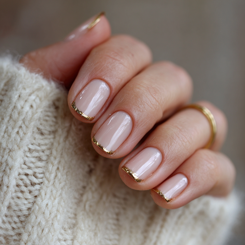 Add tiny silver or gold dots at random spots — not too many! — on a clear or nude base. It’s fun, festive, and still feels minimalist.