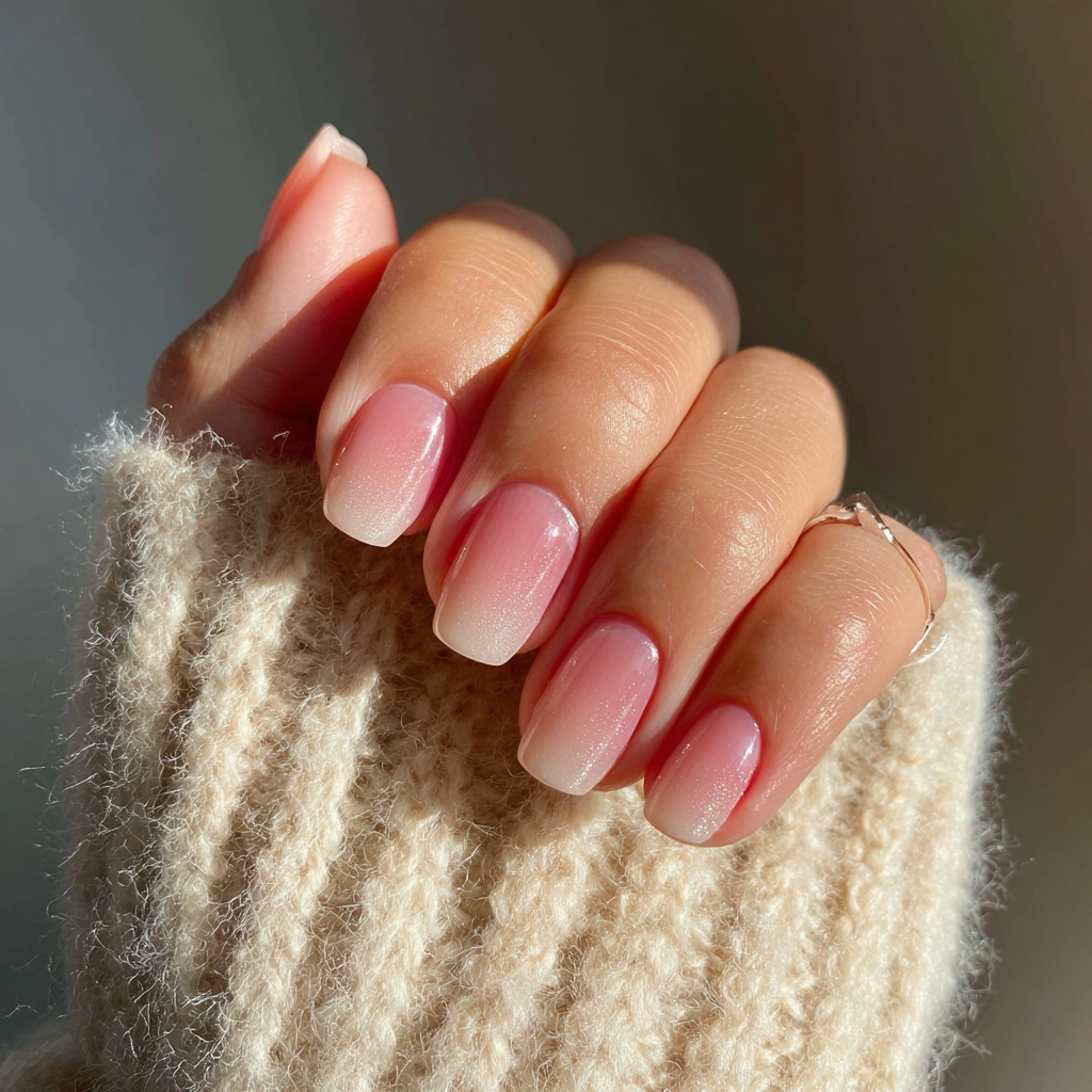Blend beige to champagne polish in a soft ombre gradient. It’s glam but natural — your nails, but glossier.