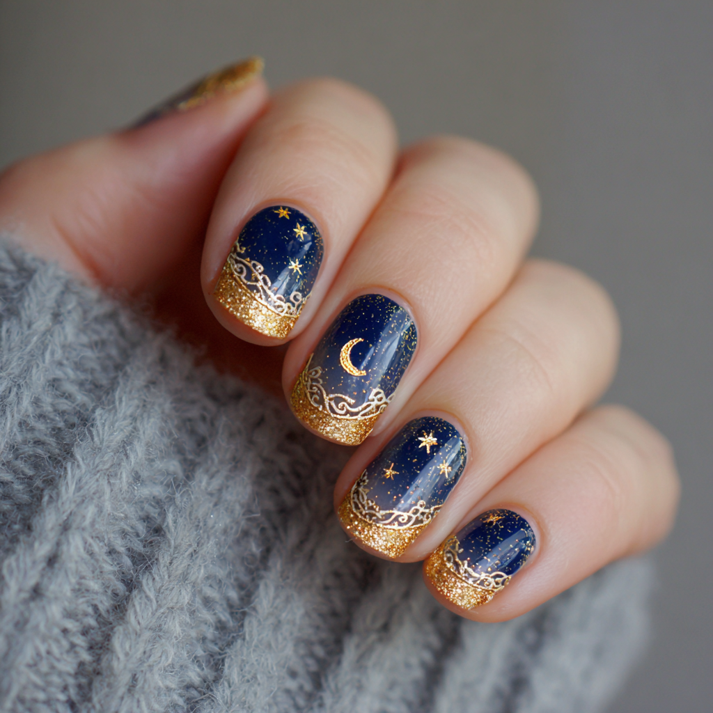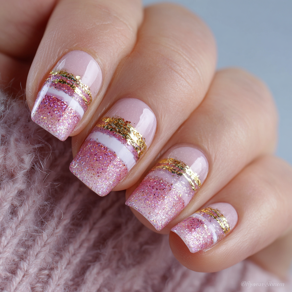 Flip the sparkle — add fine glitter only near the cuticle area instead of the tips. It’s modern, subtle, and totally NYE-approved.