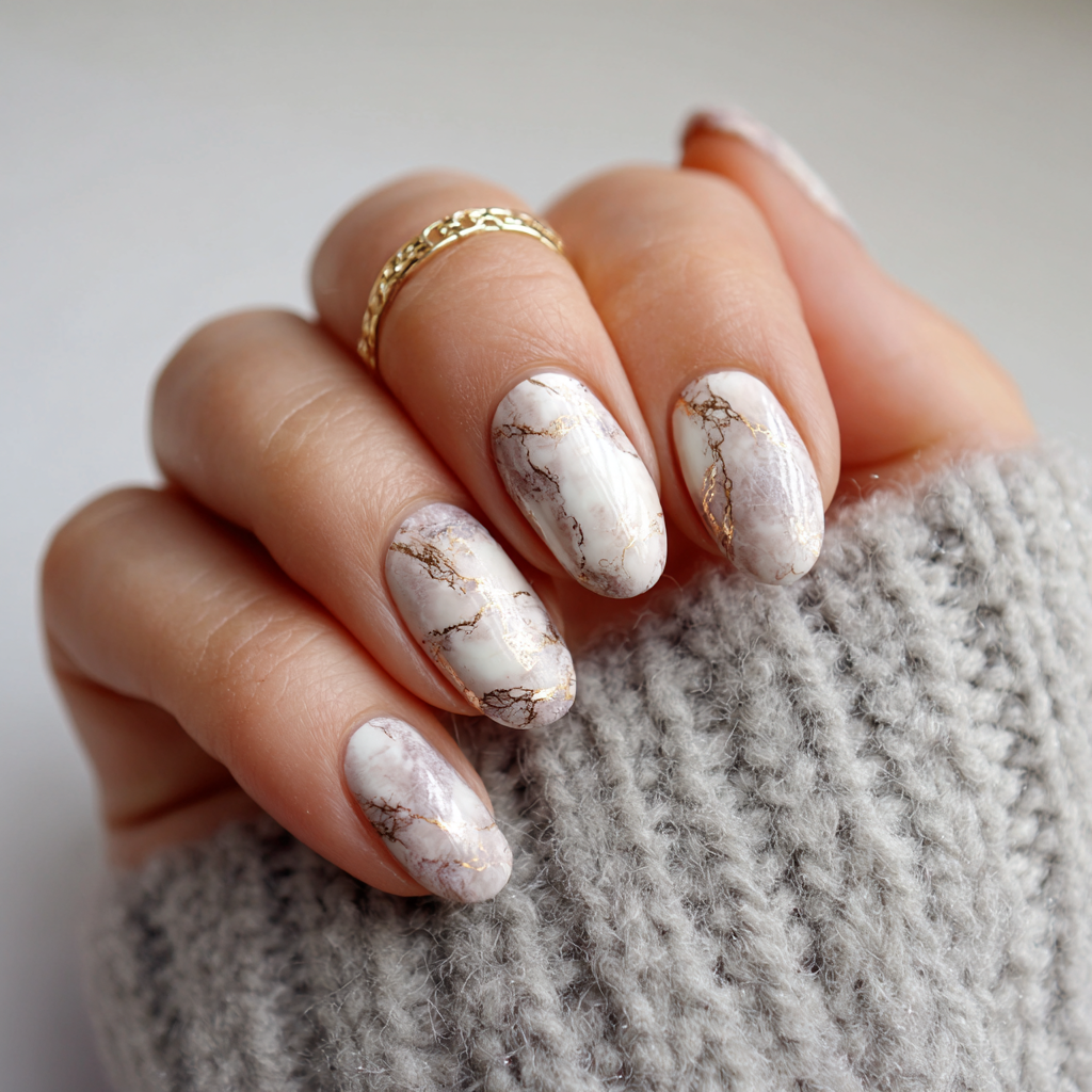 A soft marble effect in beige and ivory tones adds natural glam — ideal if your NYE outfit already sparkles enough on its own.