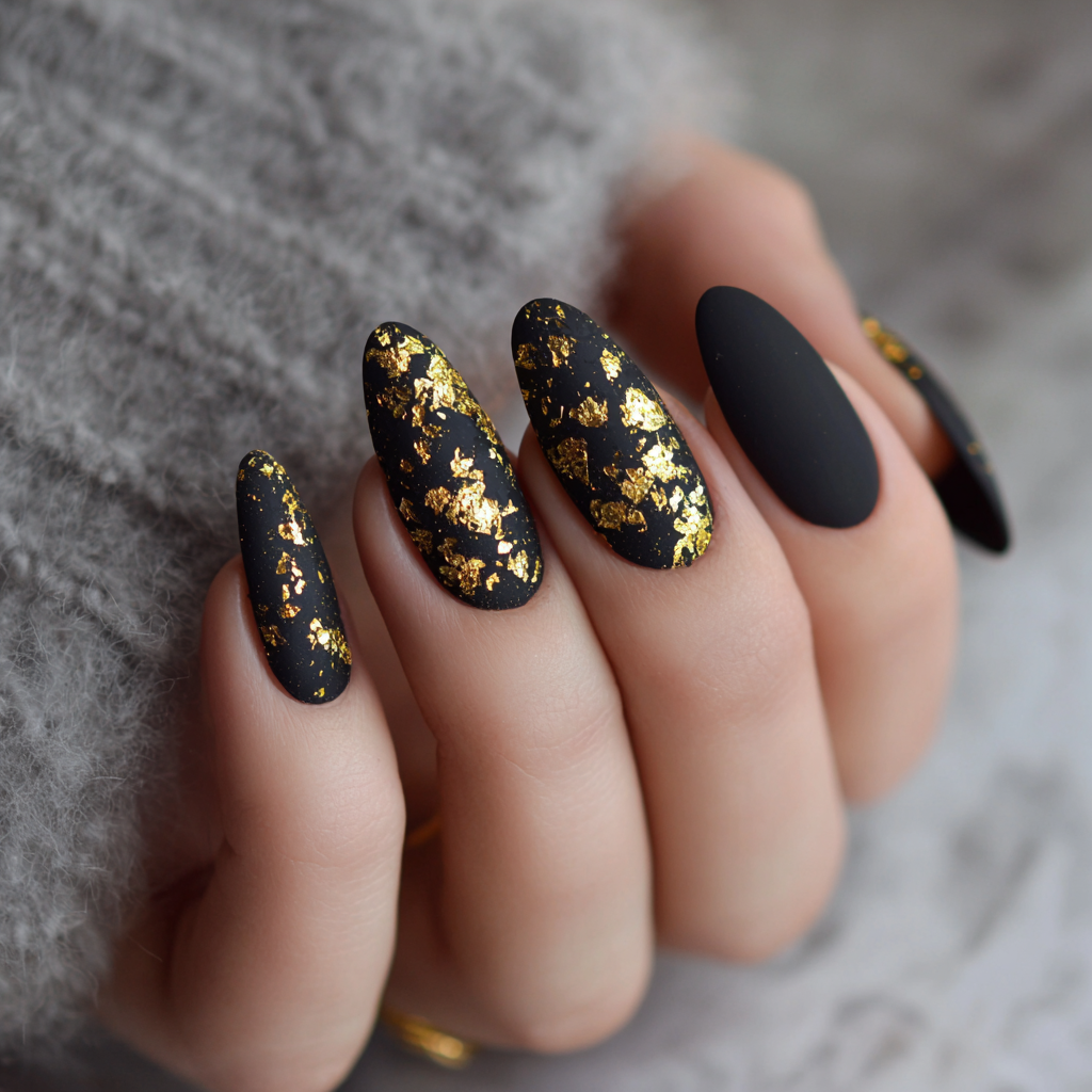 Matte nails? Yes, please. Add a few scattered gold foil flakes for a chic, celestial vibe. It’s like wearable midnight sky. 🌙