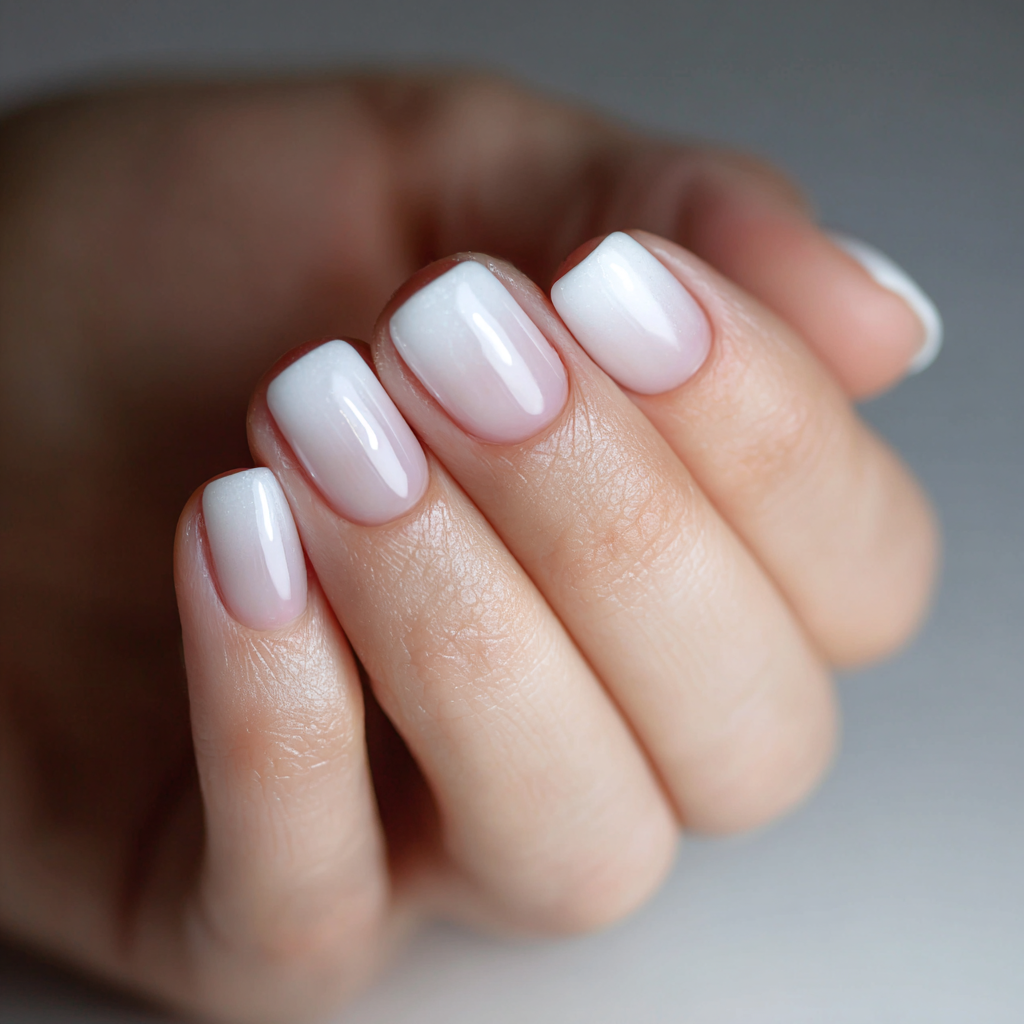Ombre visually elongates short nails. A white or milky fade keeps everything clean and fresh.