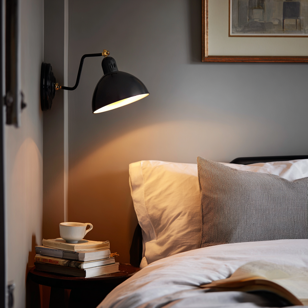 - A wall-mounted reading lamp = more room for snacks on your nightstand. Priorities, right?