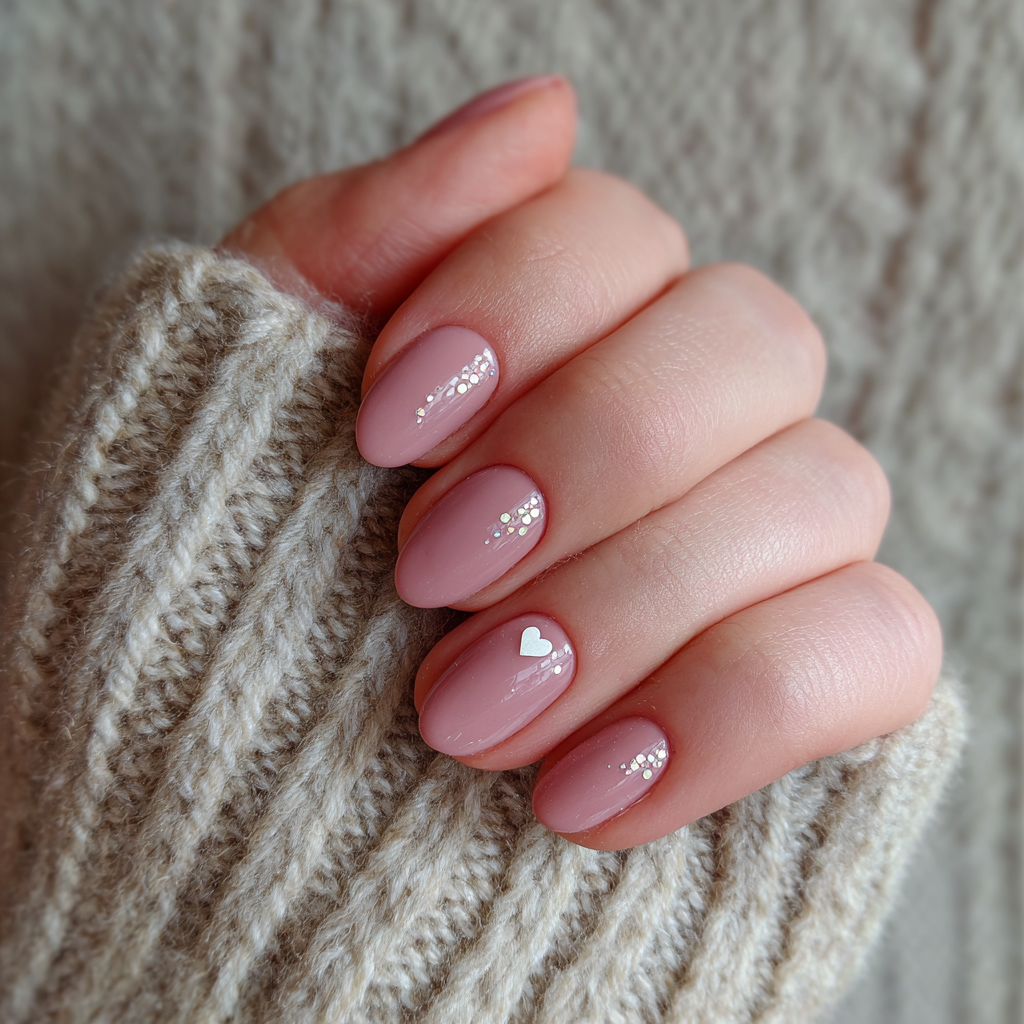 A nude-pink base with one tiny heart feels intentional and sweet. Anything bigger starts to feel loud, and we’re not here for that.