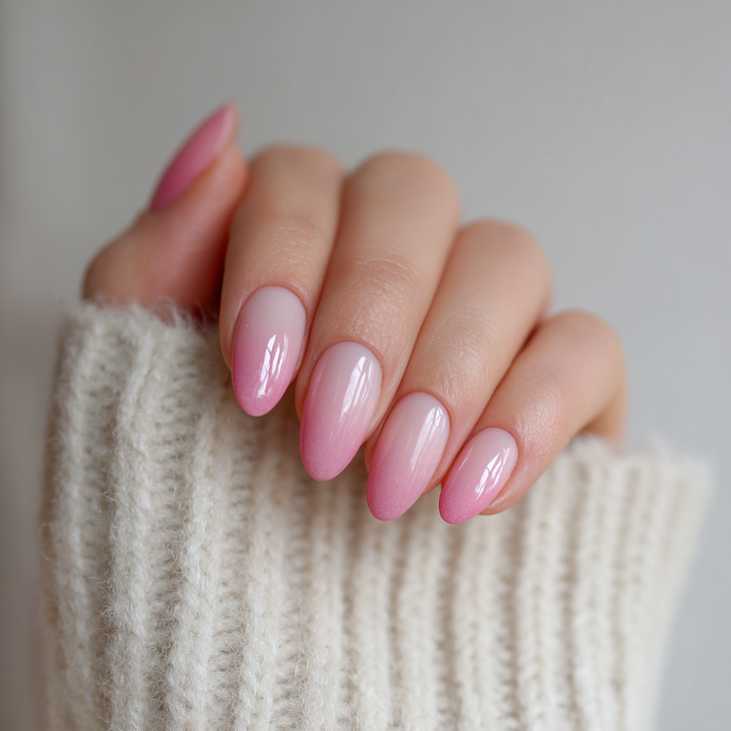 A gentle fade from pink to nude or white creates dimension without clutter. The transition feels soft and elegant.