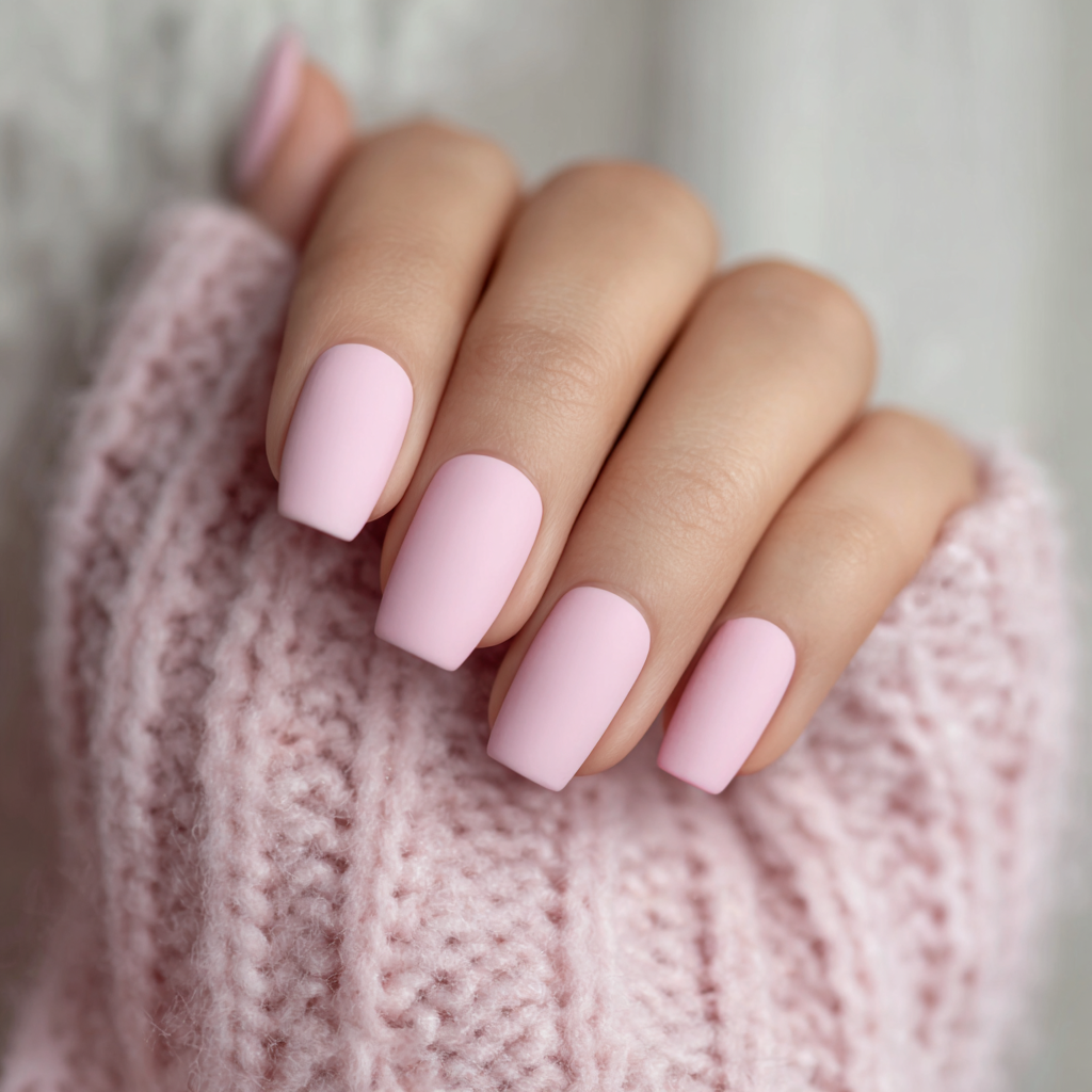 Matte finishes mute the sweetness of pink and make it feel more modern. The color stays soft, but the vibe feels calm and refined.