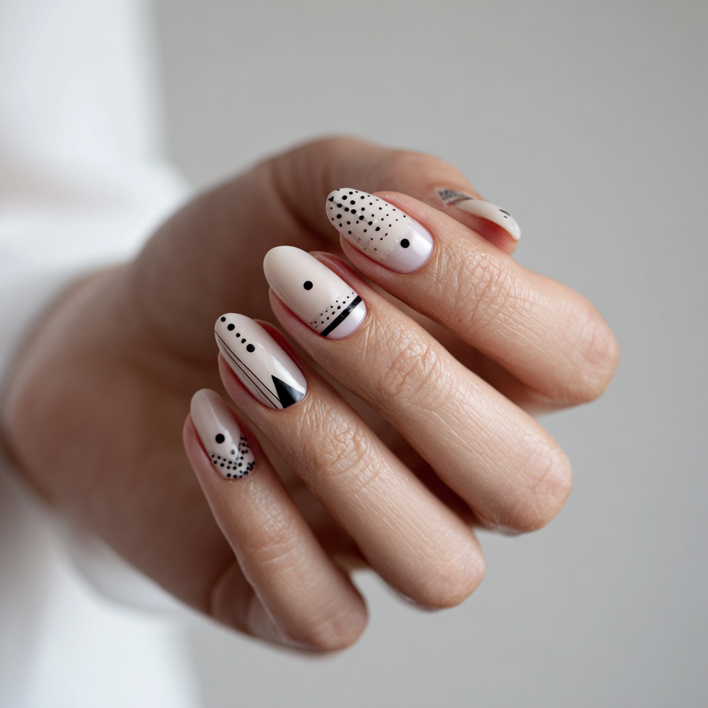 Feeling a little artsy? Try minimalist nail art with clean lines, dots, or triangles. Keep the color palette neutral—white, black, nude—and play with placement.