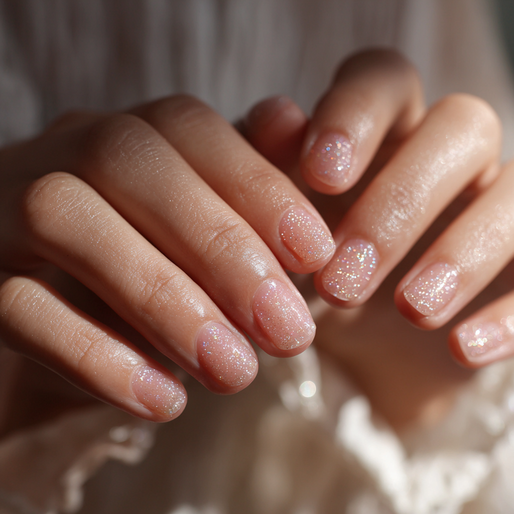 The key? Use super fine shimmer, not chunky disco-ball sparkles. A swipe of glitter on the tips or just on your ring fingers adds a bit of shine without looking like a New Year’s Eve accident.