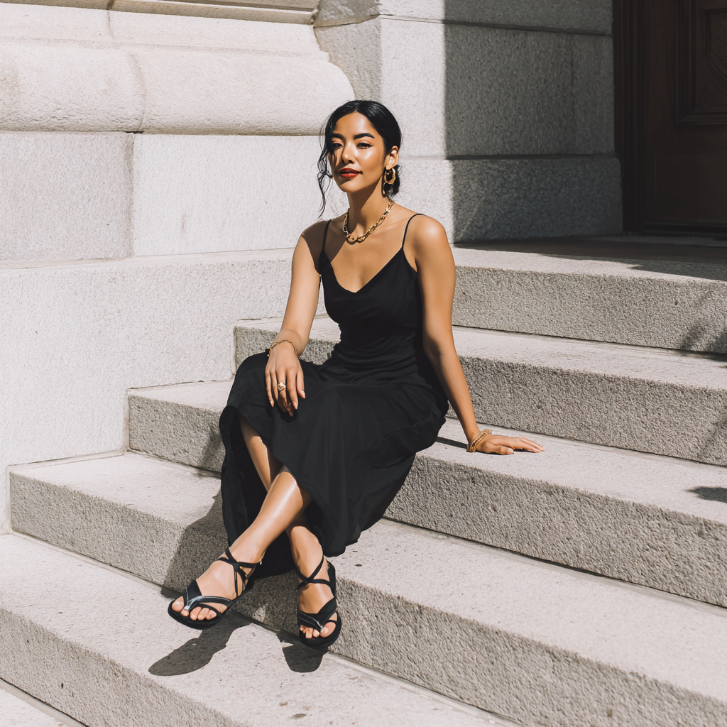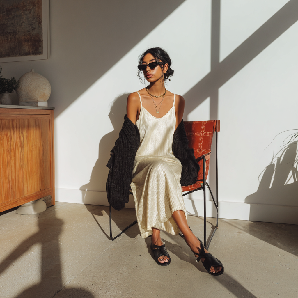 1. Slip Dress + Flat Sandals (The Go-To Look)
